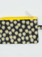 Make a bold statement with the PERA handmade mini wallet, where cheerful florals meet a sophisticated edge. Set against a deep charcoal grey background, the bright white and yellow daisies create a stunning, high-contrast look that truly pops. The vibrant yellow zipper adds a powerful flash of color. Designed to securely hold your daily essentials like cards, cash, and coins, even your earbuds. Matching wristlet keychain available.