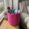 Available in distinct styles to suit your decor: choose the classic Denim-Look Basket with its crisp striped striped interior lining for a timeless feel, or opt for the vibrant Pink Terry texture (available as an open scalloped basket or a zippered pouch) featuring a playful patterned lining for a pop of color.